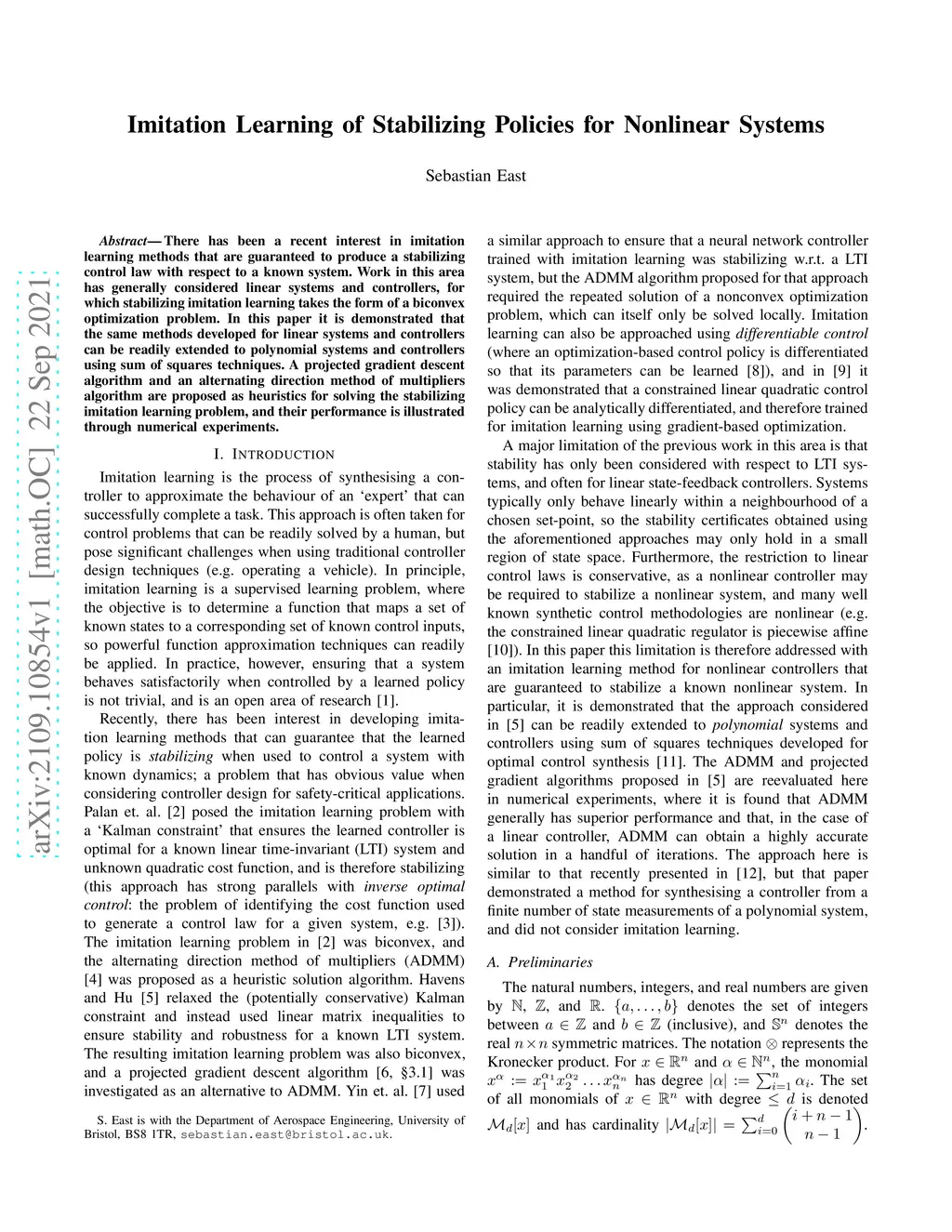 Imitation Learning of Stabilizing Policies for Nonlinear Systems