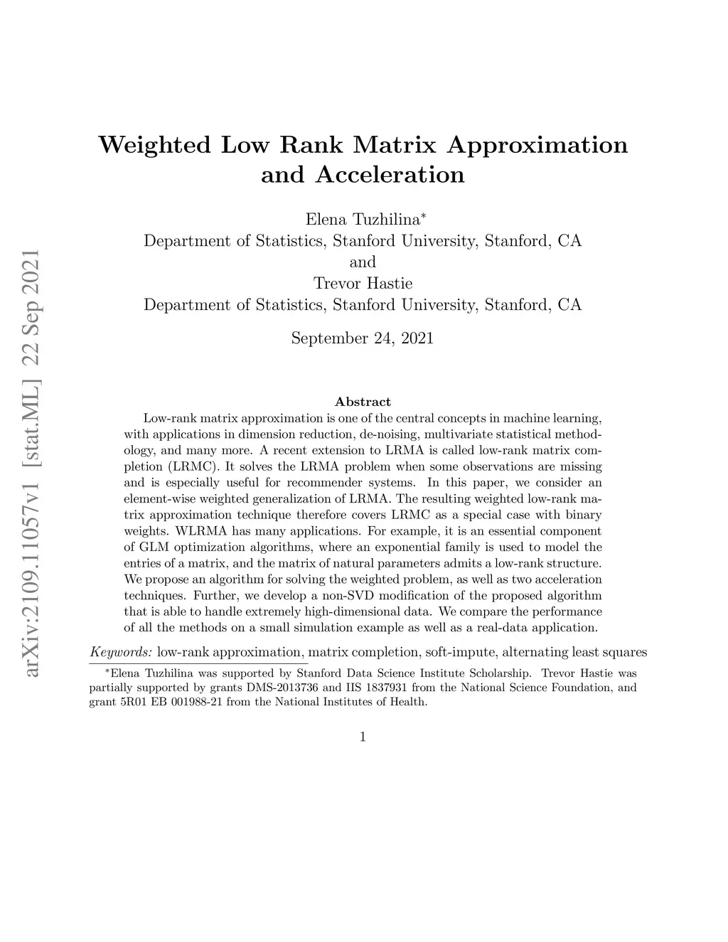 Weighted Low Rank Matrix Approximation and Acceleration