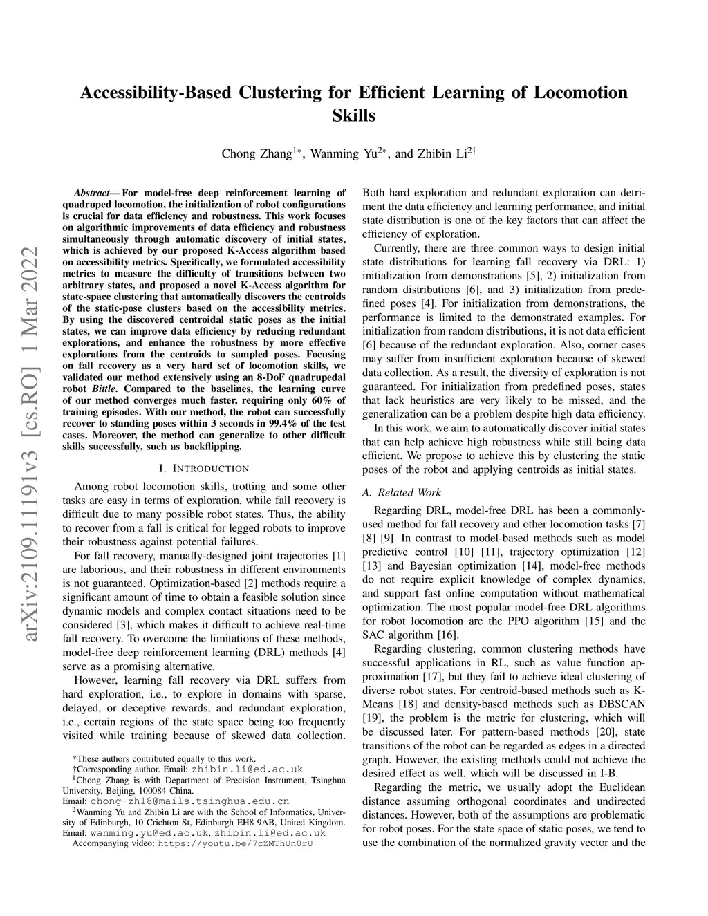 Accessibility-Based Clustering for Efficient Learning of Locomotion