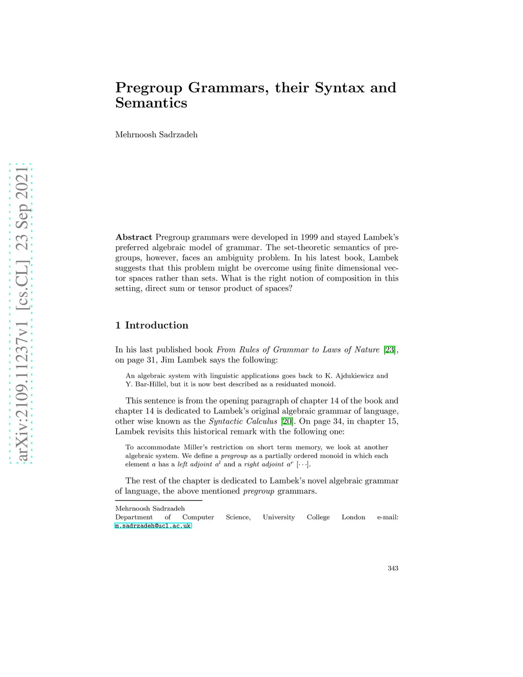 Pregroup Grammars, their Syntax and Semantics