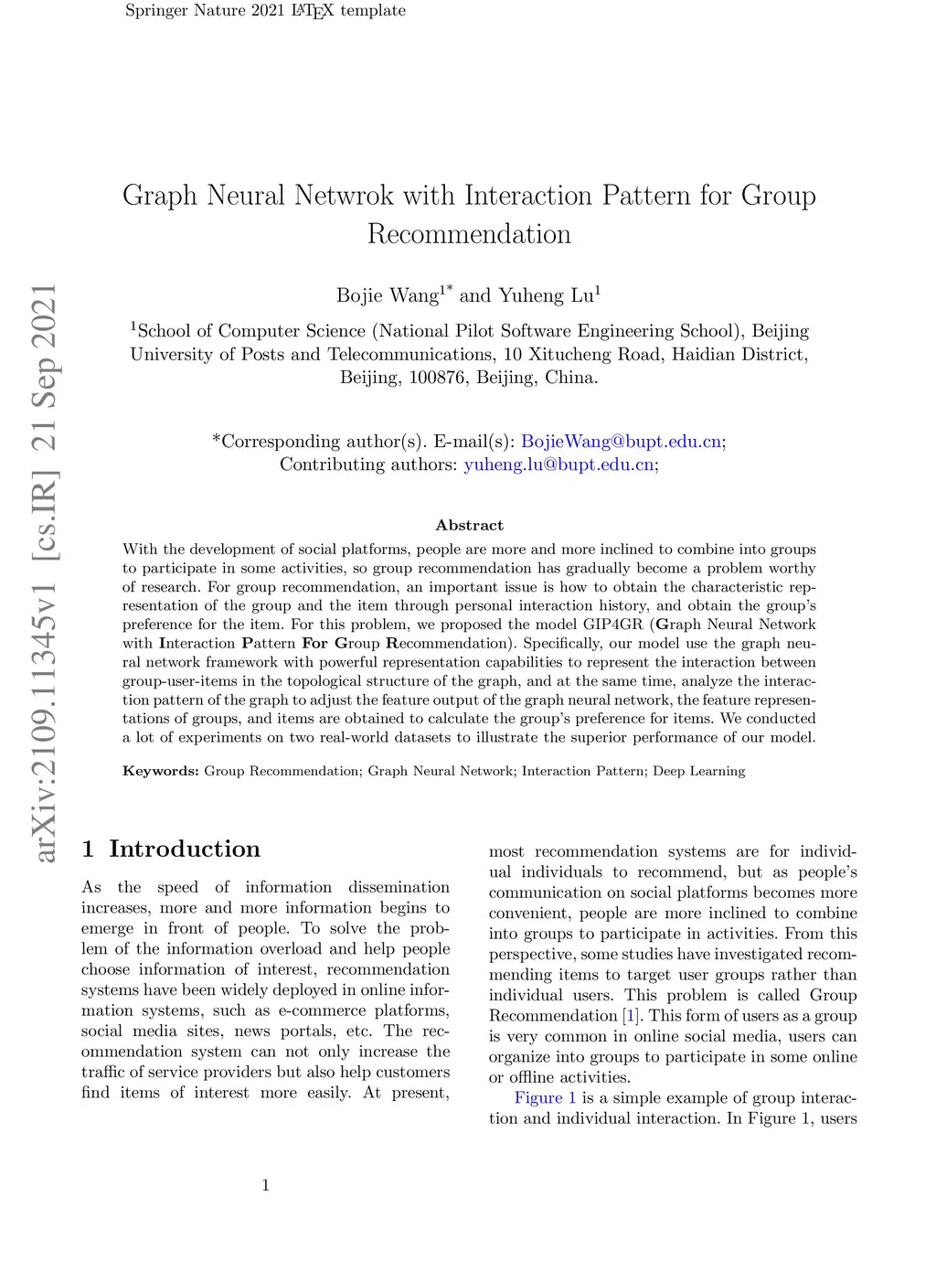 Graph Neural Netwrok with Interaction Pattern for Group Recommendation