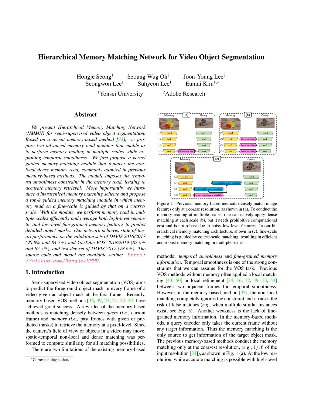 Hierarchical Memory Matching Network for Video Object Segmentation