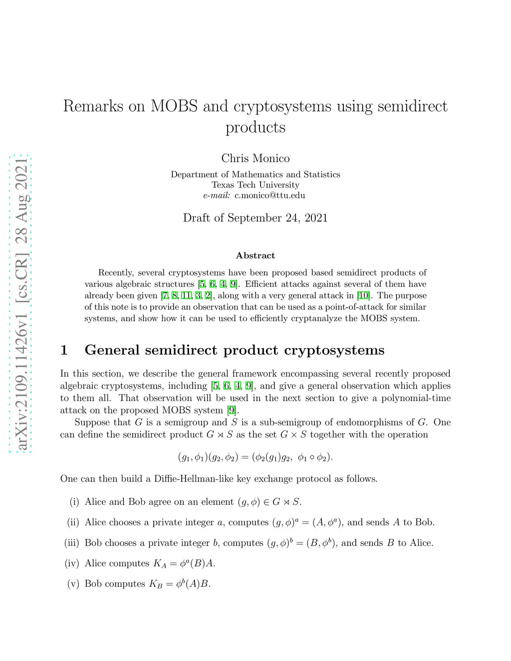 Recently, several cryptosystems have been proposed based semidirect products of various algebraic structures. Efficient attacks against several of them have already been given, along with a very general attack. The purpose of this note is to provide an observation that can be used as a point-of-attack for similar systems, and show how it can be used to efficiently cryptanalyze the MOBS system.