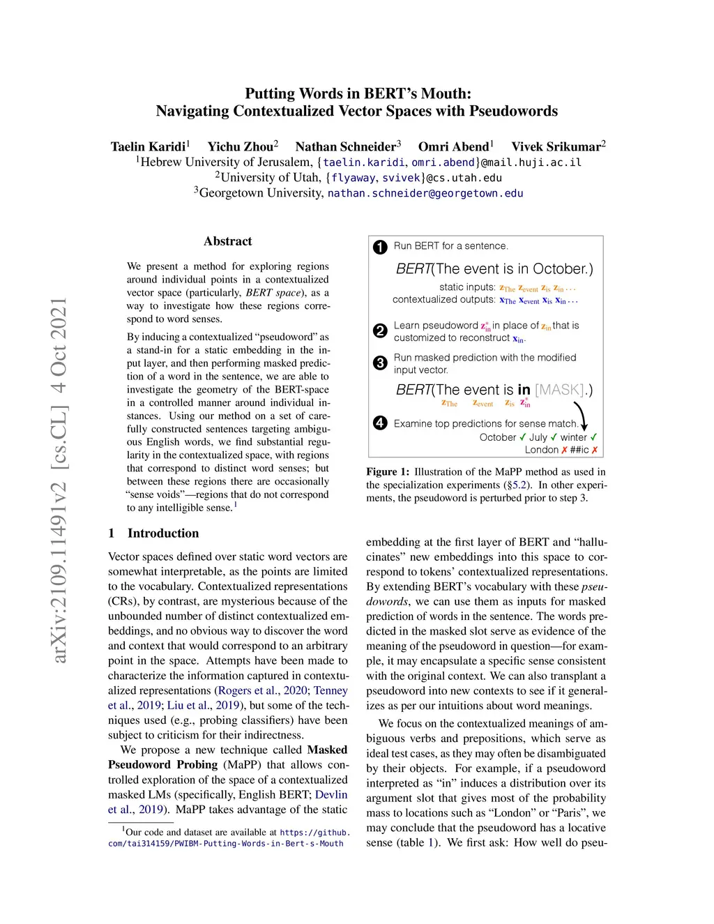 Putting Words in BERT's Mouth: Navigating Contextualized Vector Spaces