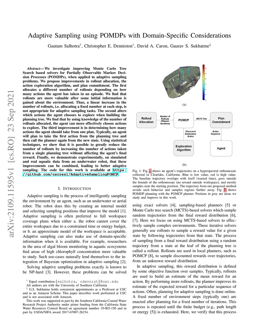 Adaptive Sampling using POMDPs with Domain-Specific Considerations