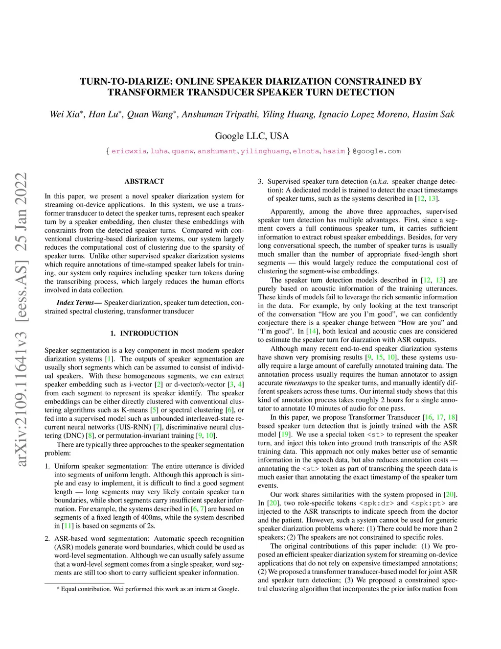Transducer Speaker Turn Detection