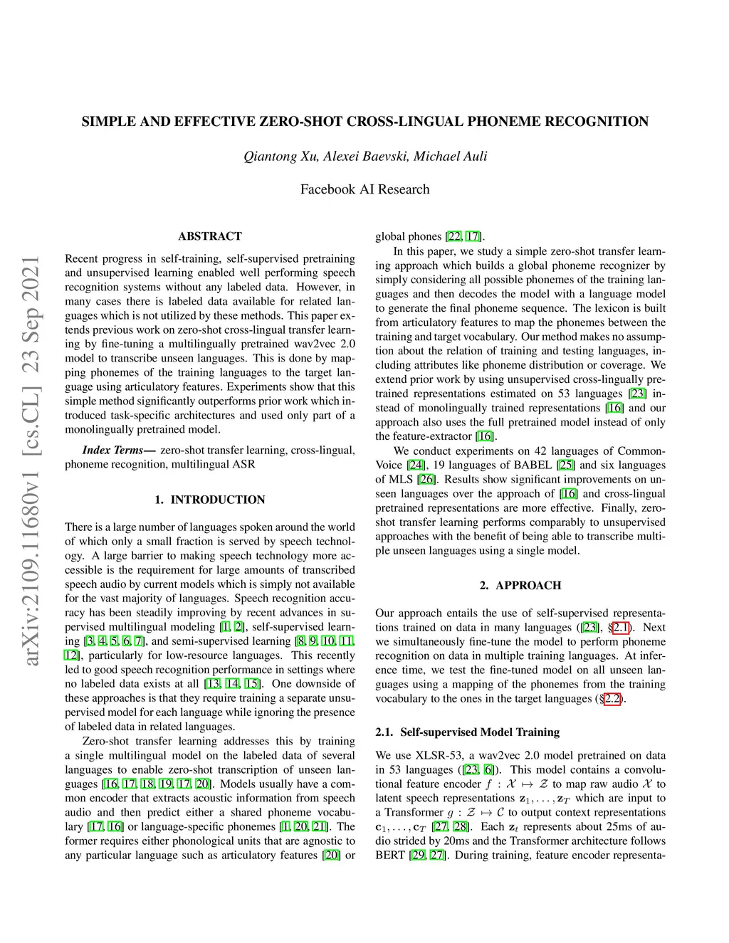 Recent progress in self-training, self-supervised pretraining and unsupervised learning enabled well performing speech recognition systems without any labeled data. However, in many cases there is labeled data available for related languages which is not utilized by these methods. This paper extends previous work on zero-shot cross-lingual transfer learning by fine-tuning a multilingually pretrained wav2vec 2.0 model to transcribe unseen languages. This is done by mapping phonemes of the training languages to the target language using articulatory features. Experiments show that this simple method significantly outperforms prior work which introduced task-specific architectures and used only part of a monolingually pretrained model.