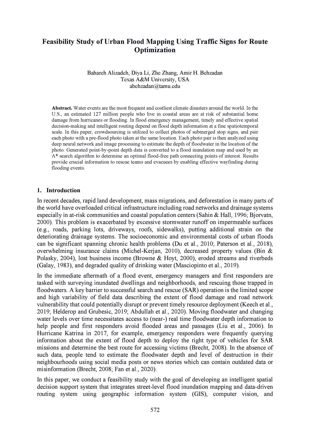 Feasibility study of urban flood mapping using traffic signs for route