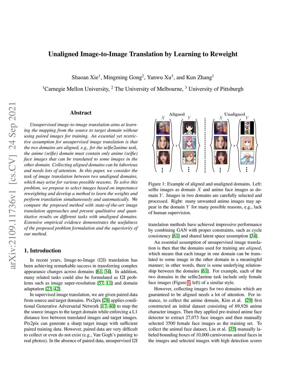 Unaligned Image-to-Image Translation by Learning to Reweight
