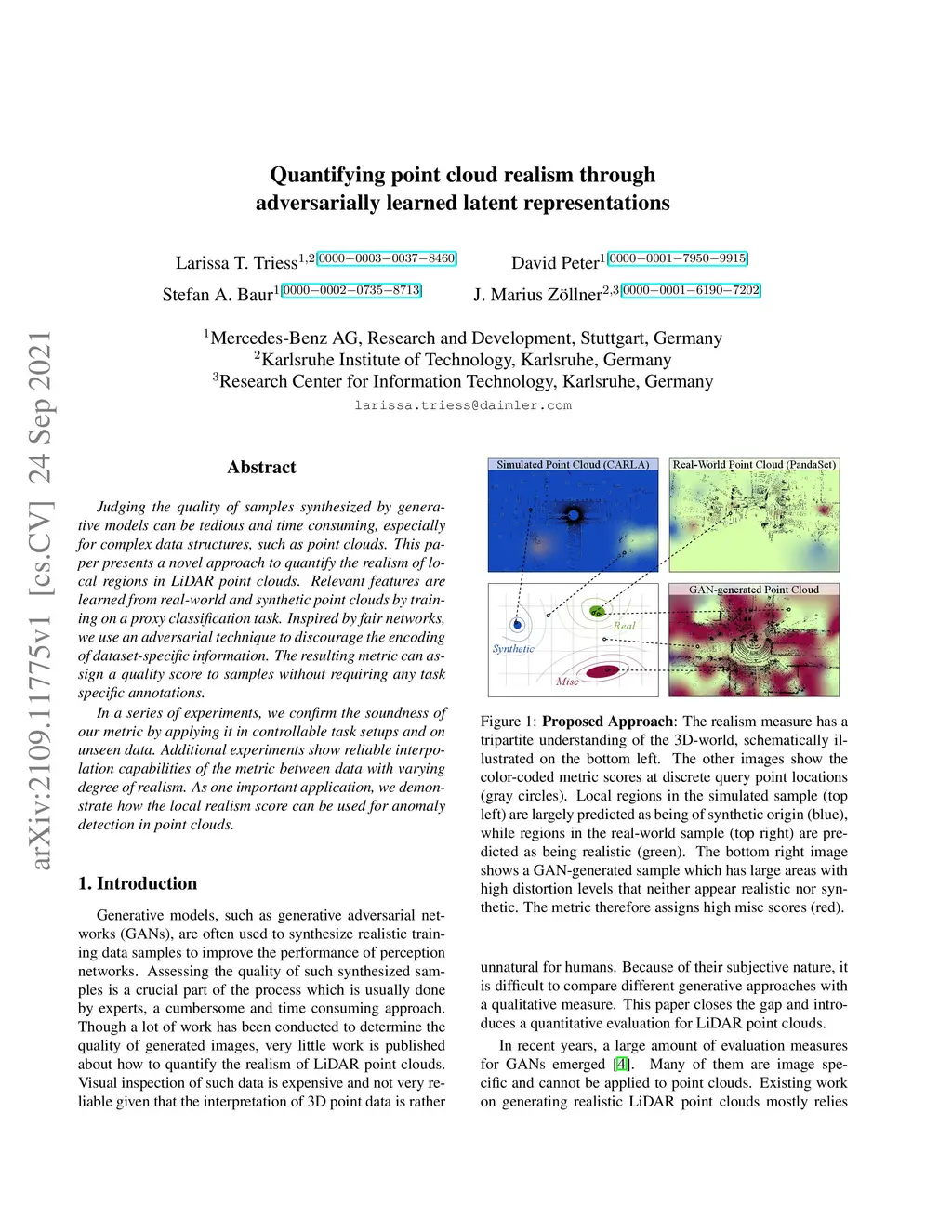 Quantifying point cloud realism through adversarially learned latent