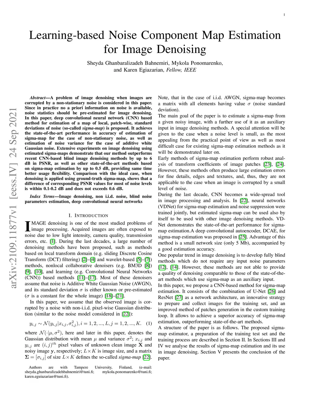 Learning-based Noise Component Map Estimation for Image Denoising