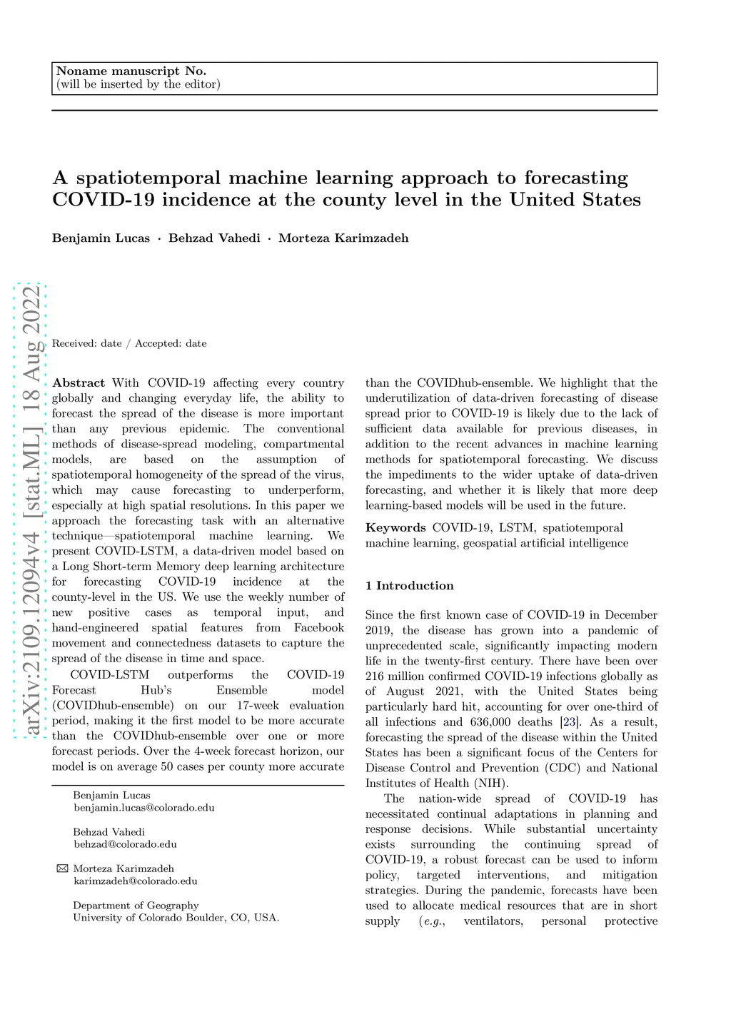 A spatiotemporal machine learning approach to forecasting COVID-19