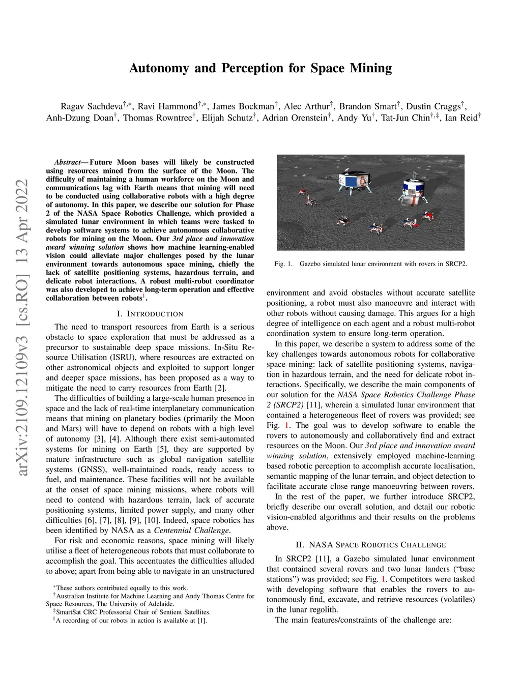 Future Moon bases will likely be constructed using resources mined from the surface of the Moon. The difficulty of maintaining a human workforce on the Moon and communications lag with Earth means that mining will need to be conducted using collaborative robots with a high degree of autonomy. In this paper, we explore the utility of robotic vision towards addressing several major challenges in autonomous mining in the lunar environment: lack of satellite positioning systems, navigation in hazardous terrain, and delicate robot interactions. Specifically, we describe and report the results of robotic vision algorithms that we developed for Phase 2 of the NASA Space Robotics Challenge, which was framed in the context of autonomous collaborative robots for mining on the Moon. The competition provided a simulated lunar environment that exhibits the complexities alluded to above. We show how machine learning-enabled vision could help alleviate the challenges posed by the lunar environment. A robust multi-robot coordinator was also developed to achieve long-term operation and effective collaboration between robots.