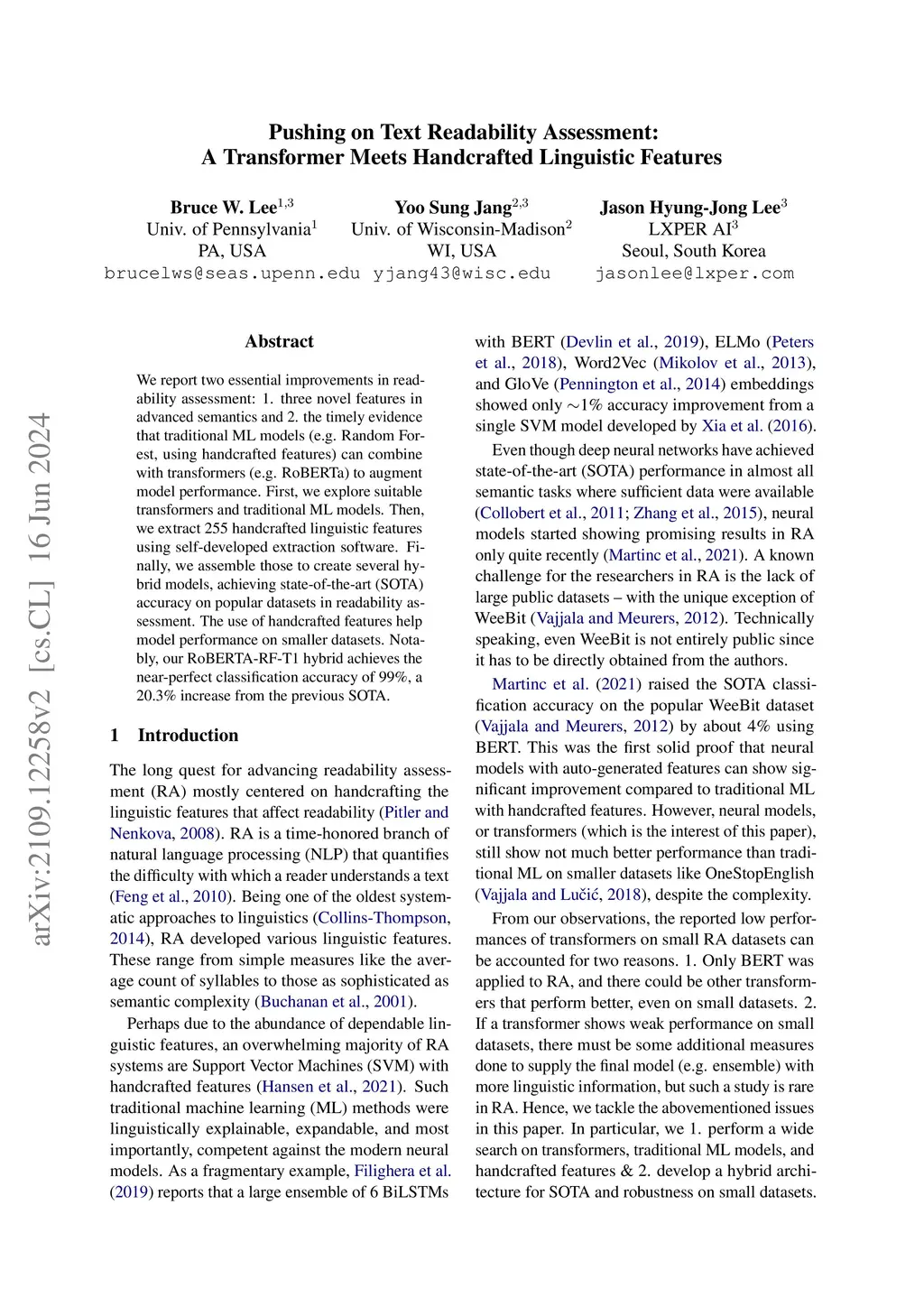 Pushing on Text Readability Assessment: A Transformer Meets Handcrafted