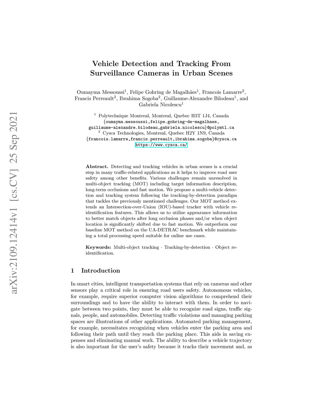 Vehicle Detection and Tracking From Surveillance Cameras in Urban Scenes