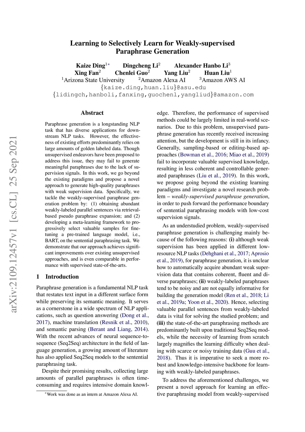 Learning to Selectively Learn for Weakly-supervised Paraphrase