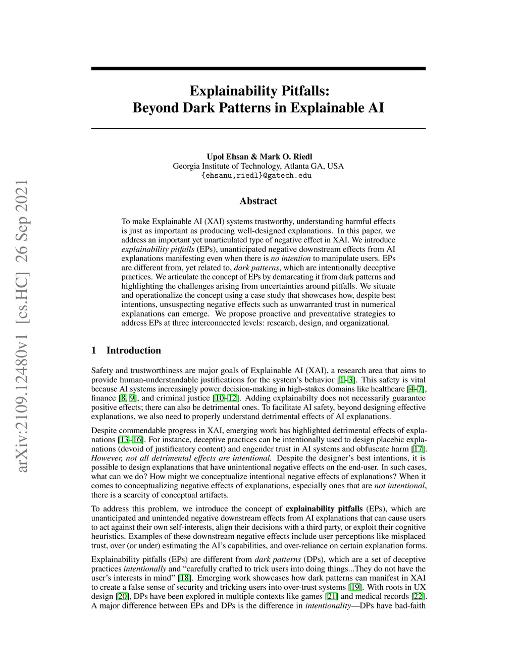 Explainability Pitfalls: Beyond Dark Patterns in Explainable AI