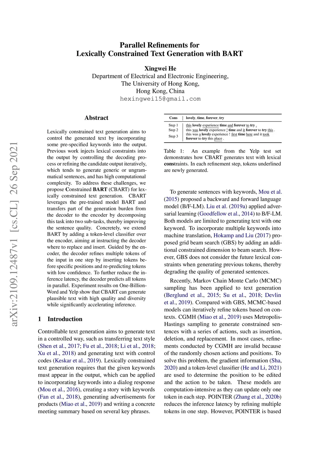 Parallel Refinements for Lexically Constrained Text Generation with BART