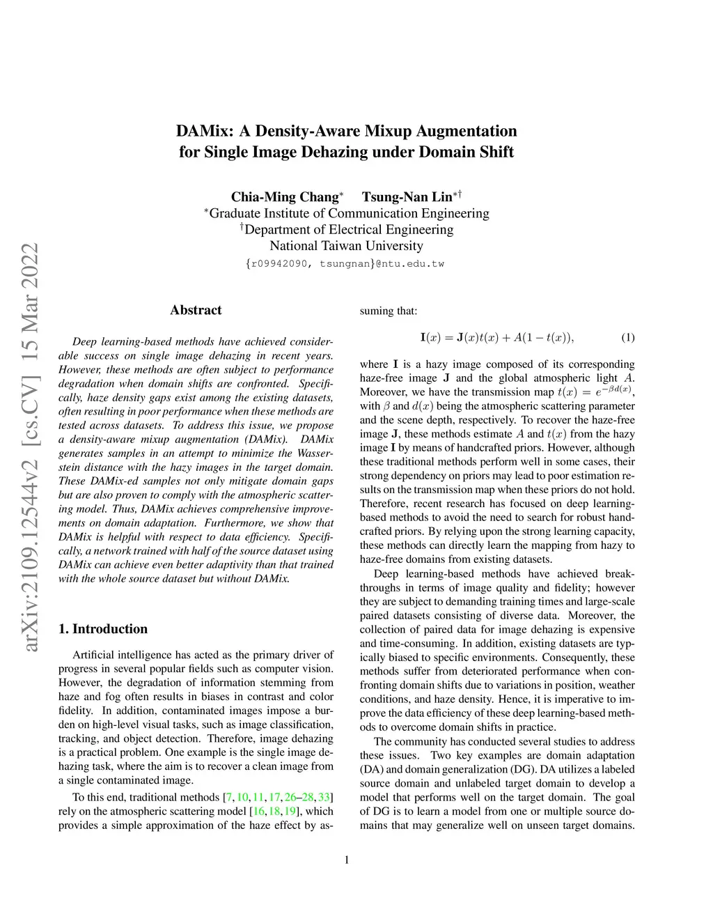 DAMix: A Density-Aware Mixup Augmentation for Single Image Dehazing