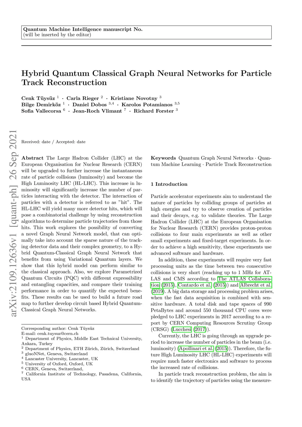 Hybrid Quantum Classical Graph Neural Networks for Particle Track