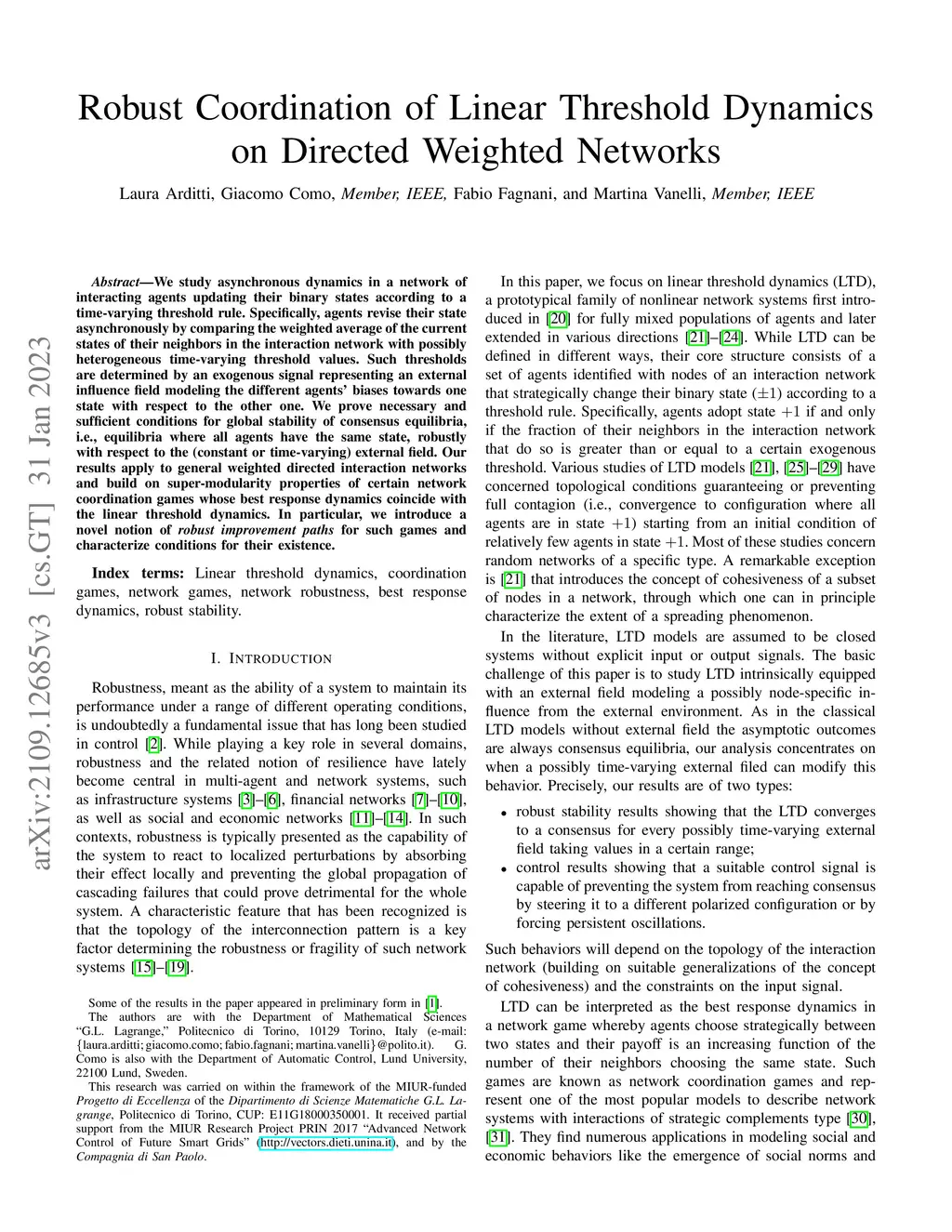 We study asynchronous dynamics in a network of interacting agents updating their binary states according to a time-varying threshold rule. Specifically, agents revise their state asynchronously by comparing the weighted average of the current states of their neighbors in the interaction network with possibly heterogeneous time-varying threshold values. Such thresholds are determined by an exogenous signal representing an external influence field modeling the different agents' biases towards one state with respect to the other one. We prove necessary and sufficient conditions for global stability of consensus equilibria, i.e., equilibria where all agents have the same state, robustly with respect to the (constant or time-varying) external field. Our results apply to general weighted directed interaction networks and build on super-modularity properties of certain network coordination games whose best response dynamics coincide with the linear threshold dynamics. In particular, we introduce a novel notion of robust improvement paths for such games and characterize conditions for their existence.