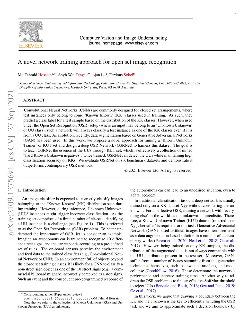 A novel network training approach for open set image recognition