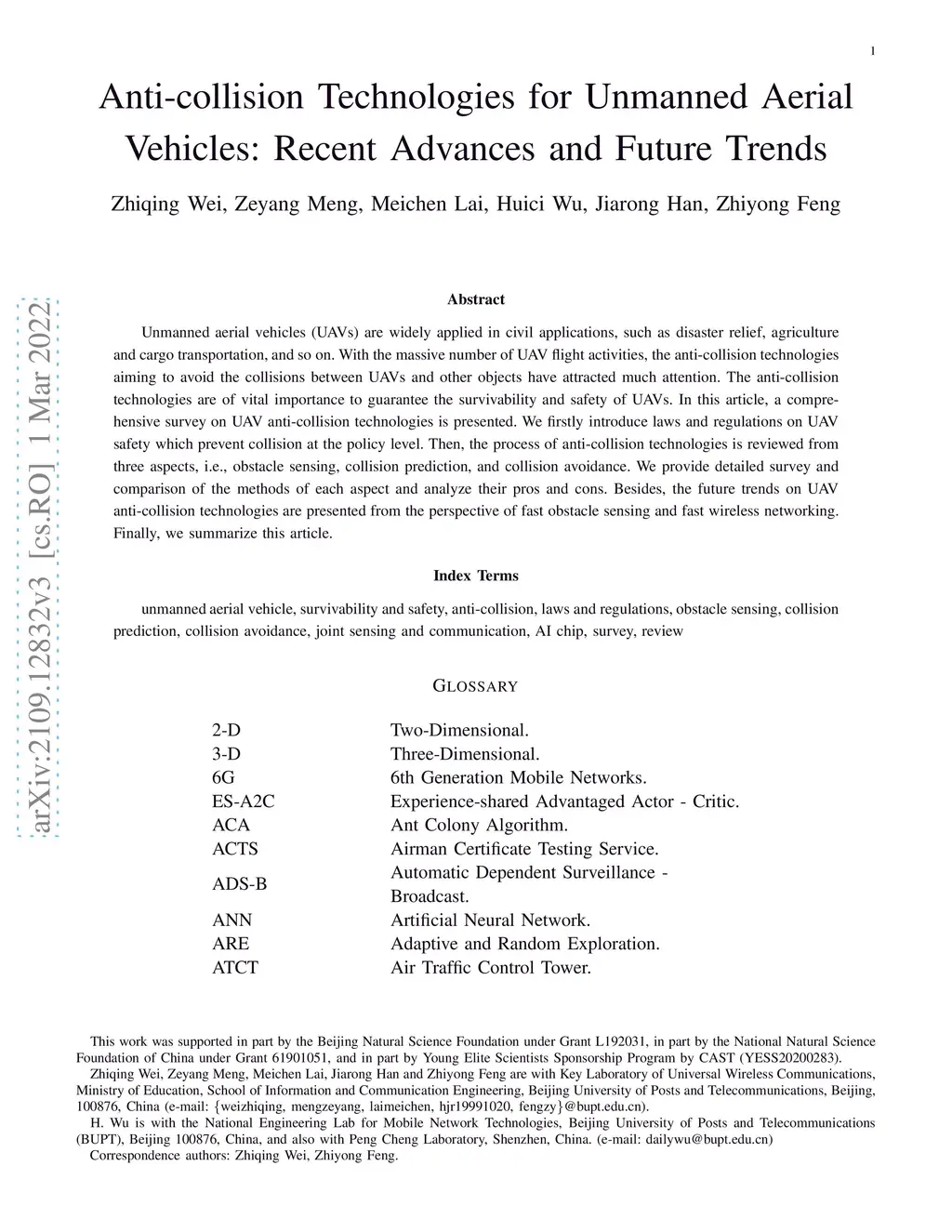 Anti-collision Technologies for Unmanned Aerial Vehicles: Recent
