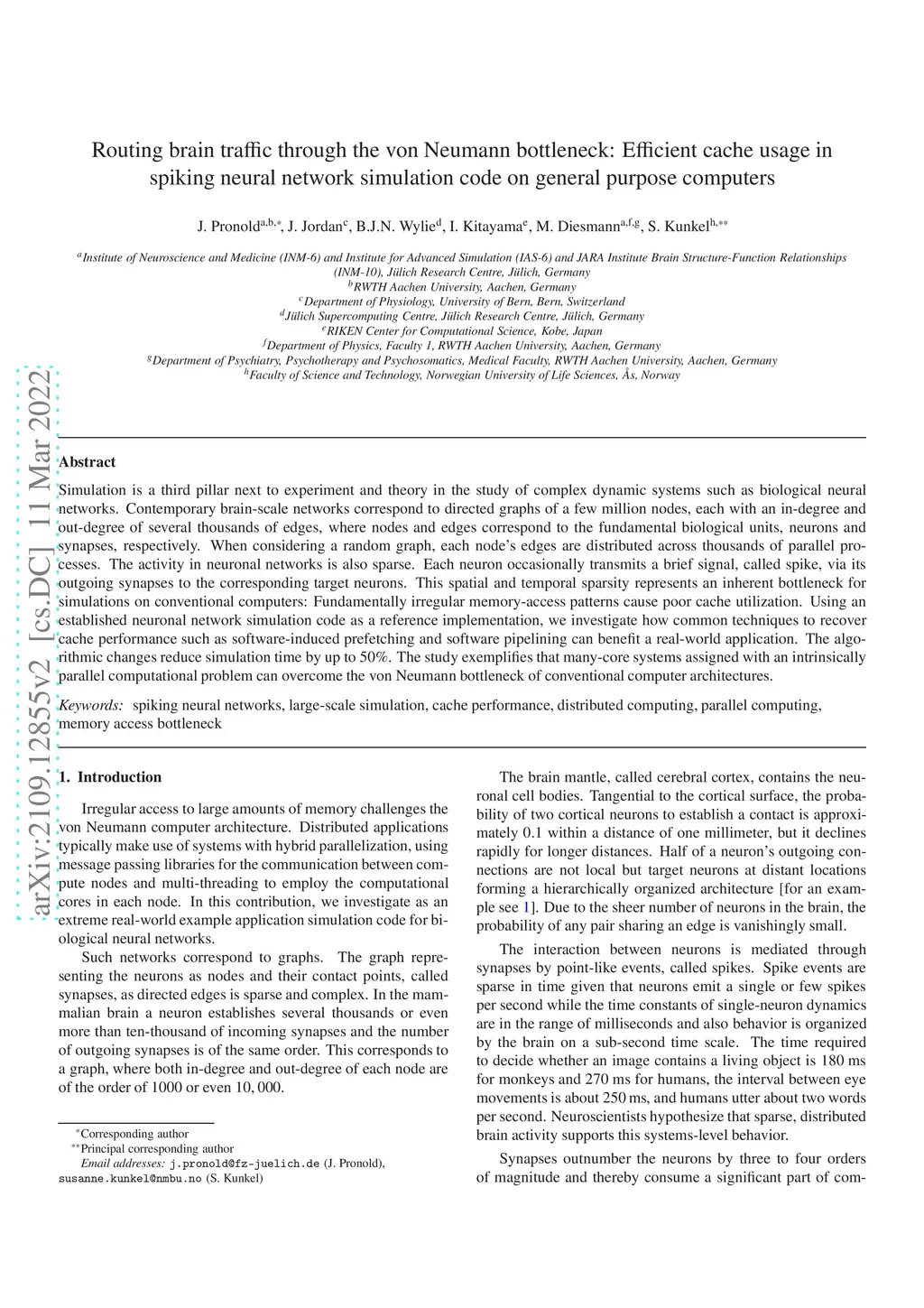 Routing brain traffic through the von Neumann bottleneck: Efficient