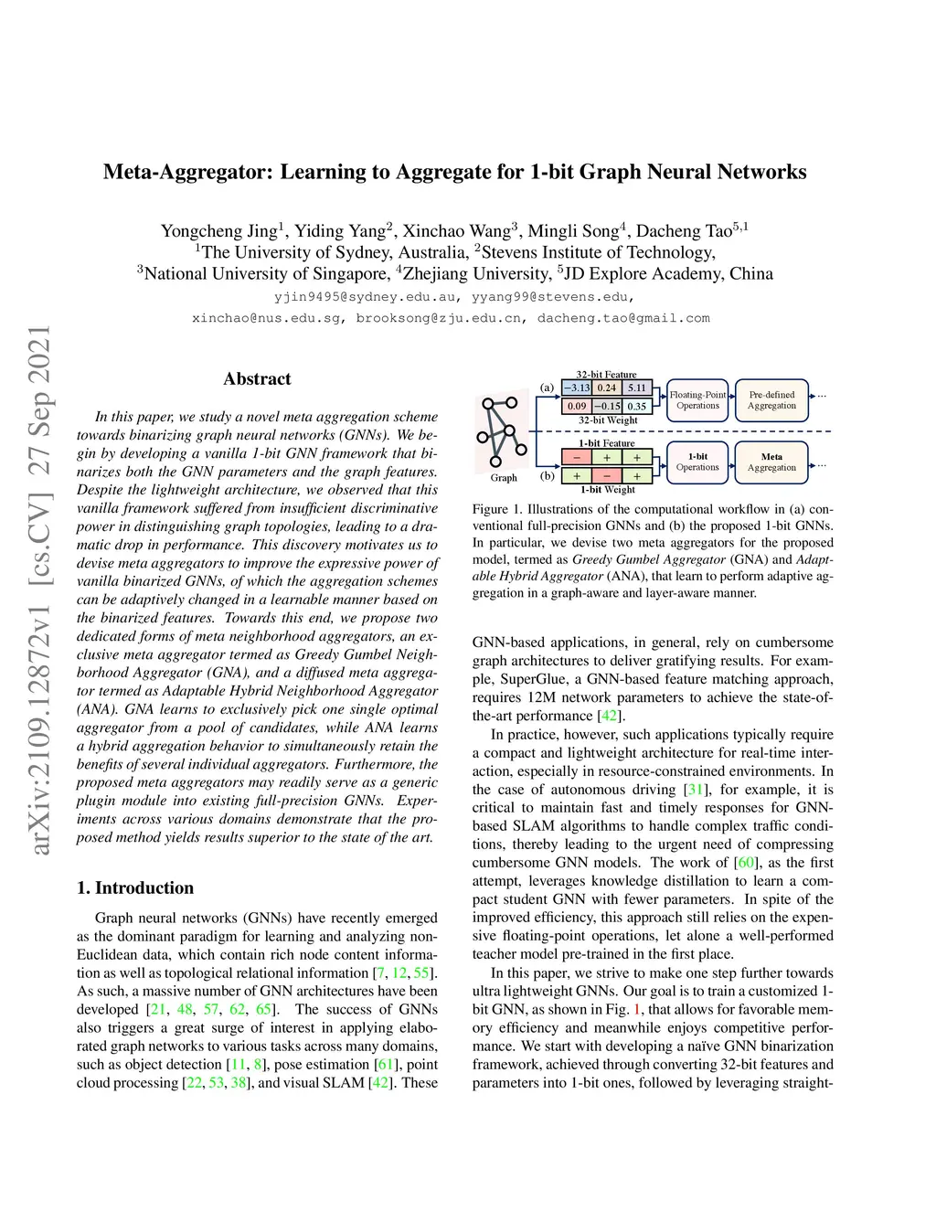 Meta-Aggregator: Learning to Aggregate for 1-bit Graph Neural Networks