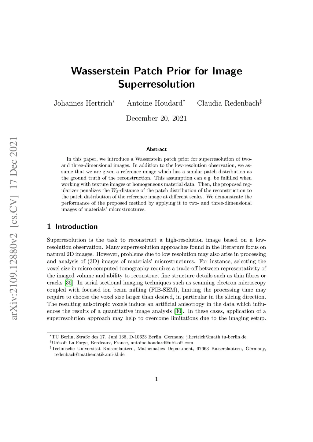 Wasserstein Patch Prior for Image Superresolution