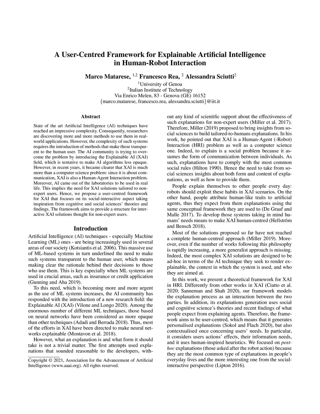 State of the art Artificial Intelligence (AI) techniques have reached an impressive complexity. Consequently, researchers are discovering more and more methods to use them in real-world applications. However, the complexity of such systems requires the introduction of methods that make those transparent to the human user. The AI community is trying to overcome the problem by introducing the Explainable AI (XAI) field, which is tentative to make AI algorithms less opaque. However, in recent years, it became clearer that XAI is much more than a computer science problem: since it is about communication, XAI is also a Human-Agent Interaction problem. Moreover, AI came out of the laboratories to be used in real life. This implies the need for XAI solutions tailored to non-expert users. Hence, we propose a user-centred framework for XAI that focuses on its social-interactive aspect taking inspiration from cognitive and social sciences' theories and findings. The framework aims to provide a structure for interactive XAI solutions thought for non-expert users.