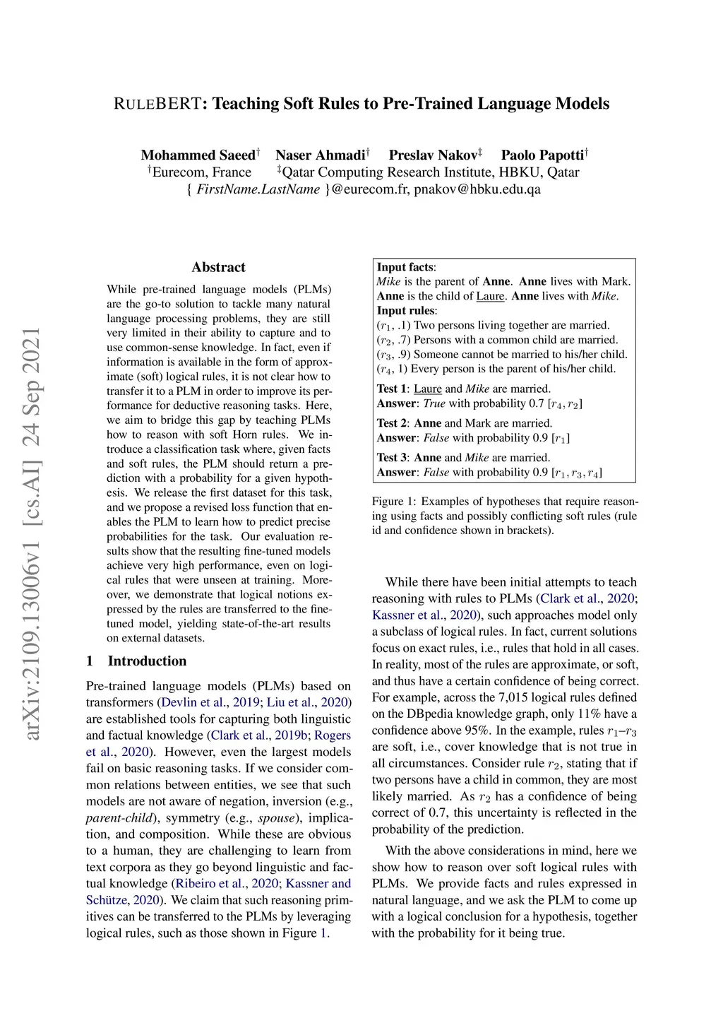 RuleBert: Teaching Soft Rules to Pre-trained Language Models