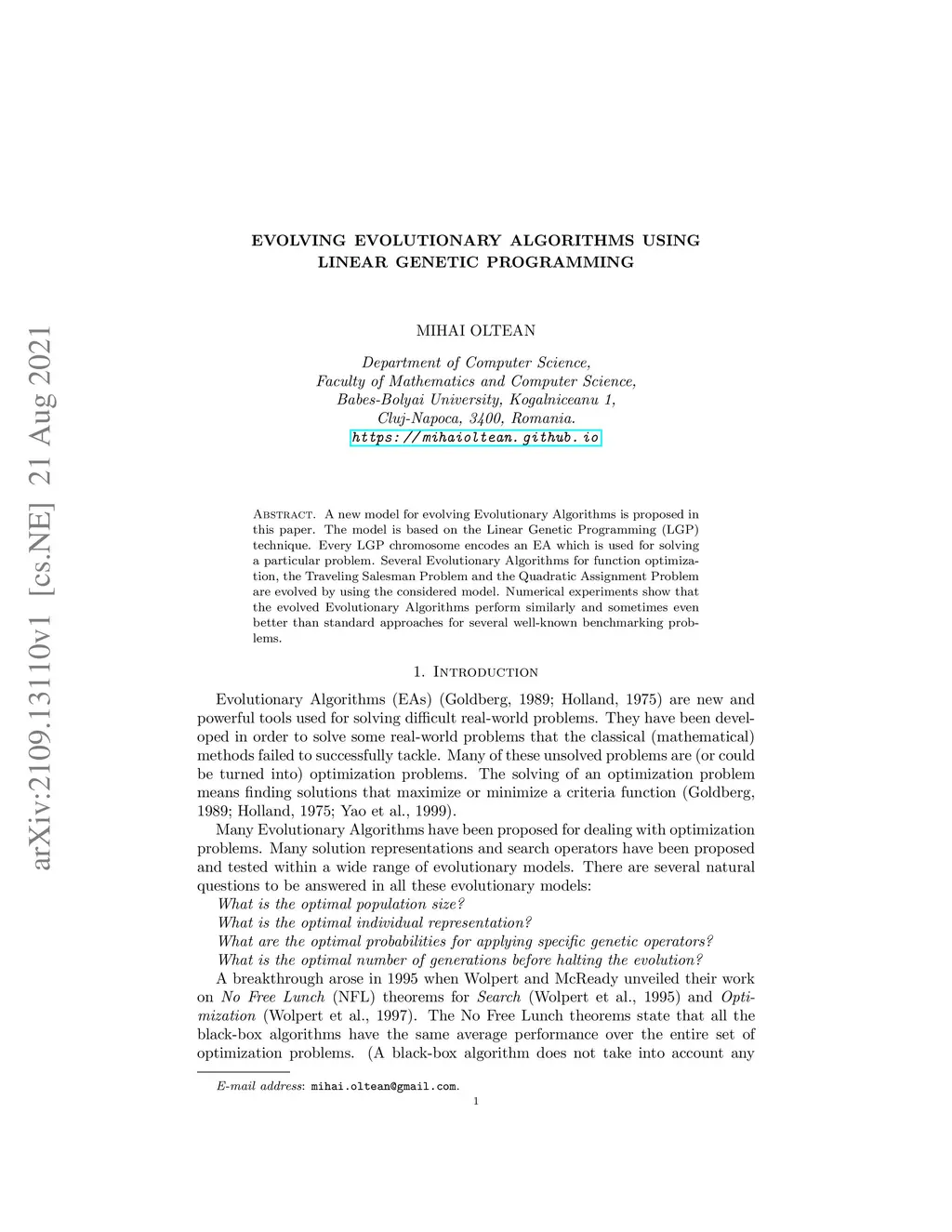 Evolving Evolutionary Algorithms using Linear Genetic Programming