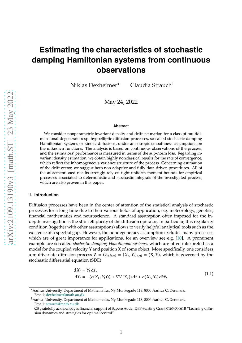Estimating the characteristics of stochastic damping Hamiltonian systems