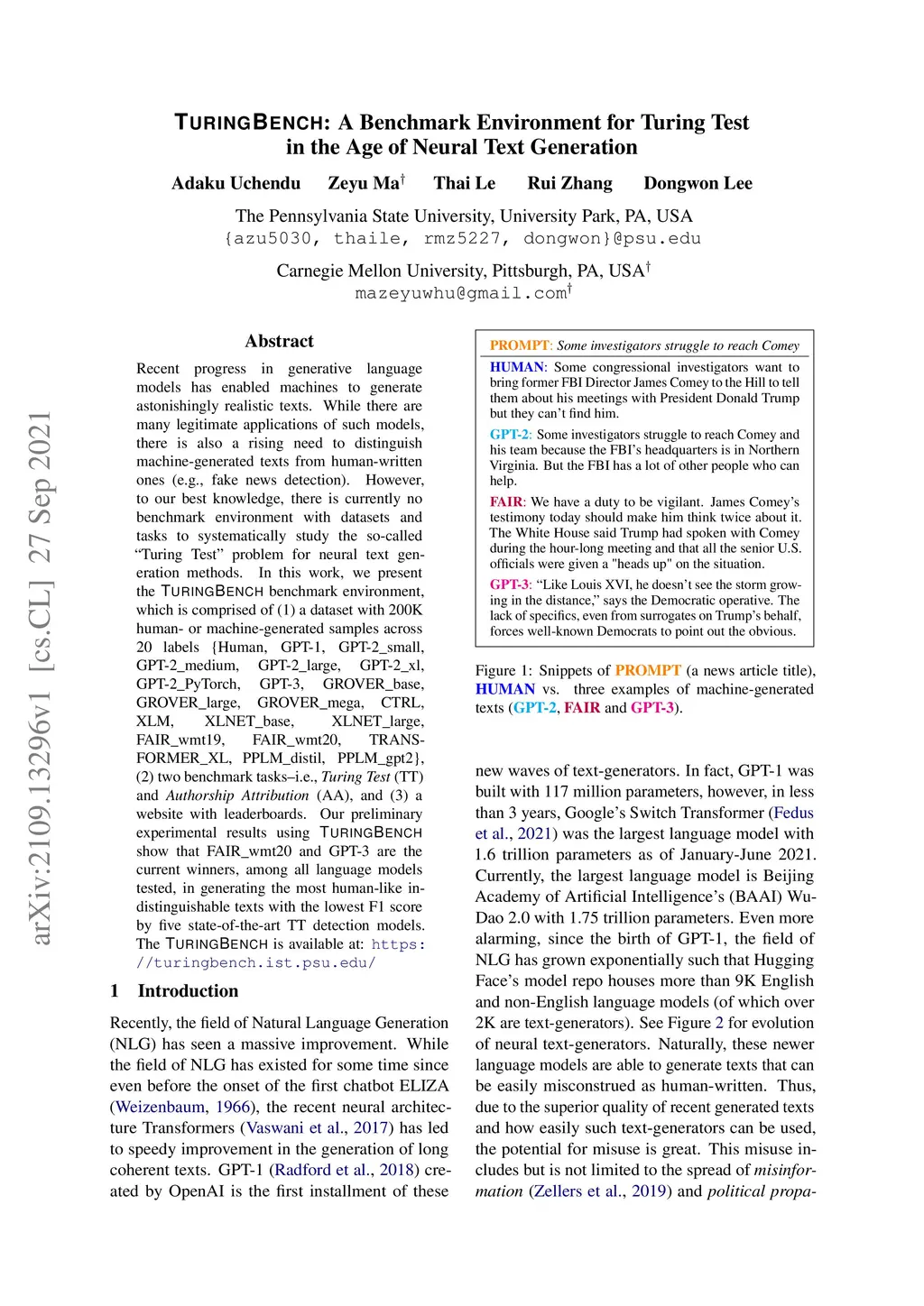 TURINGBENCH: A Benchmark Environment for Turing Test in the Age of