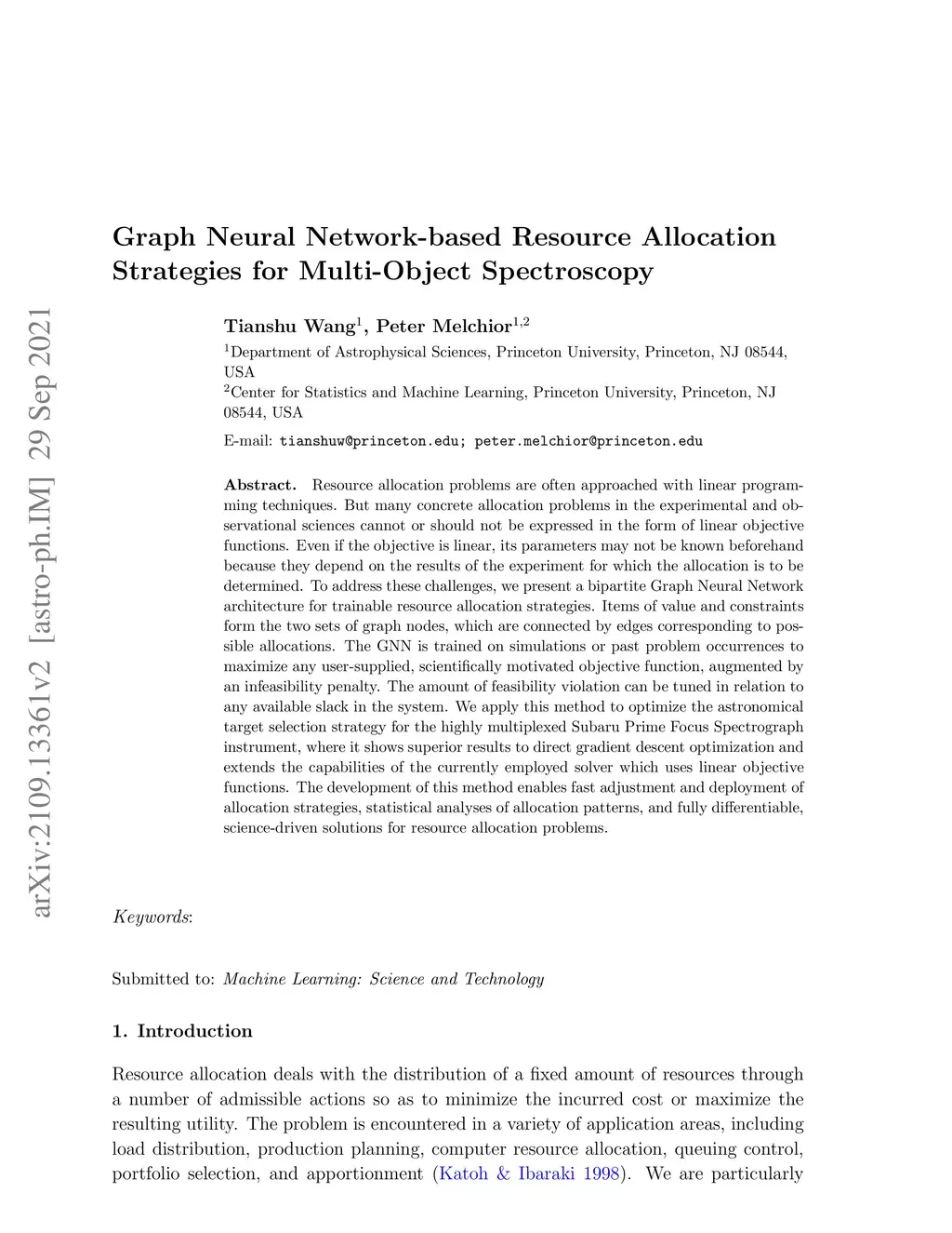 Resource allocation problems are often approached with linear programming techniques. But many concrete allocation problems in the experimental and observational sciences cannot or should not be expressed in the form of linear objective functions. Even if the objective is linear, its parameters may not be known beforehand because they depend on the results of the experiment for which the allocation is to be determined. To address these challenges, we present a bipartite Graph Neural Network architecture for trainable resource allocation strategies. Items of value and constraints form the two sets of graph nodes, which are connected by edges corresponding to possible allocations. The GNN is trained on simulations or past problem occurrences to maximize any user-supplied, scientifically motivated objective function, augmented by an infeasibility penalty. The amount of feasibility violation can be tuned in relation to any available slack in the system. We apply this method to optimize the astronomical target selection strategy for the highly multiplexed Subaru Prime Focus Spectrograph instrument, where it shows superior results to direct gradient descent optimization and extends the capabilities of the currently employed solver which uses linear objective functions. The development of this method enables fast adjustment and deployment of allocation strategies, statistical analyses of allocation patterns, and fully differentiable, science-driven solutions for resource allocation problems.