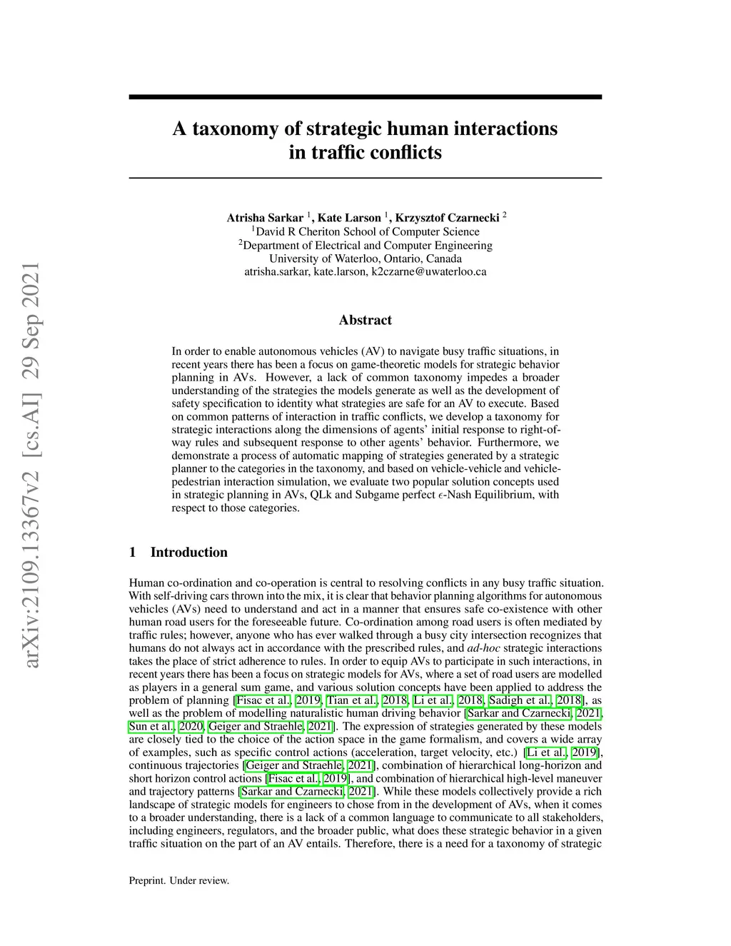 A taxonomy of strategic human interactions in traffic conflicts