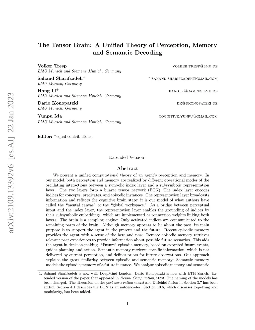 The Tensor Brain: A Unified Theory of Perception, Memory and Semantic