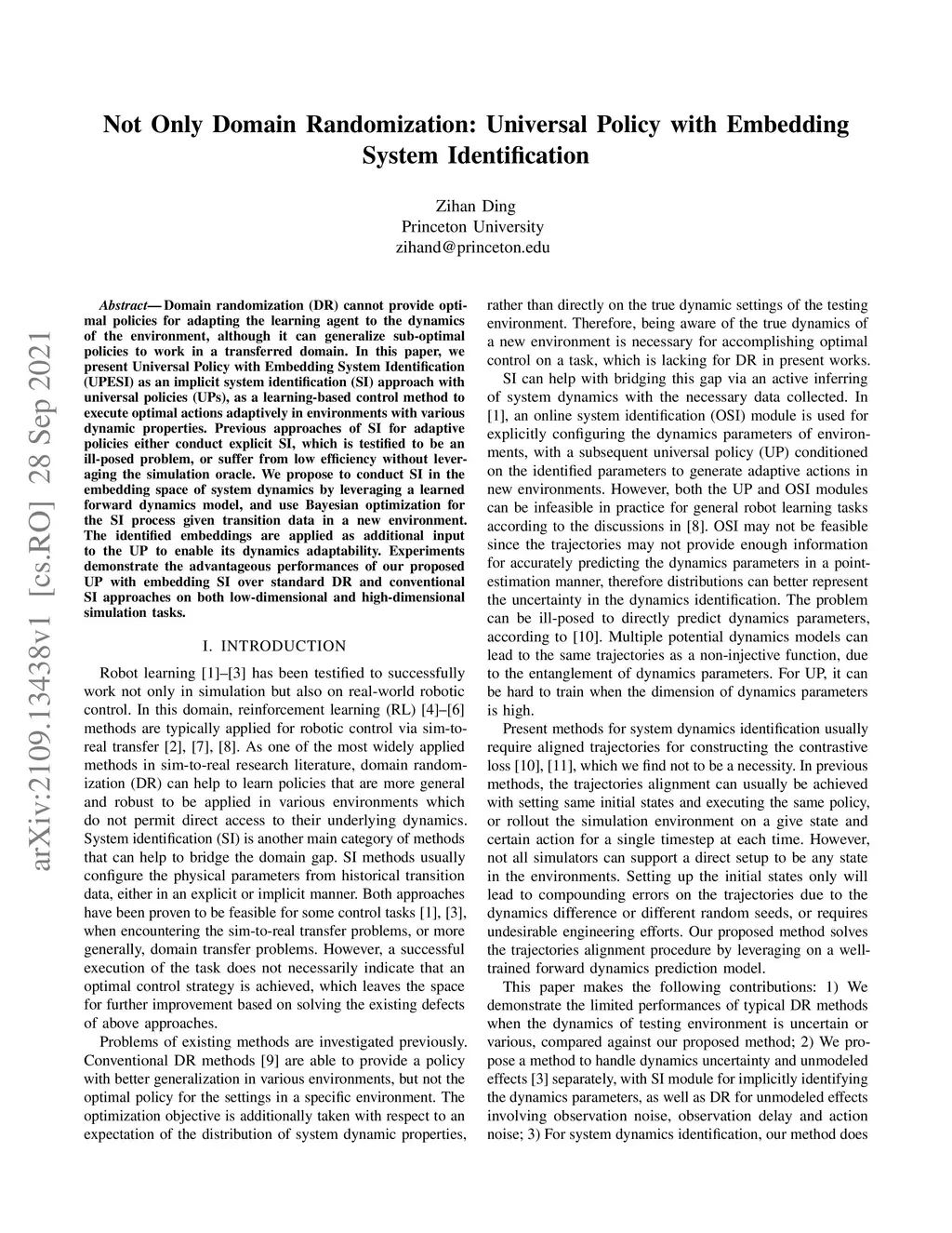 Not Only Domain Randomization: Universal Policy with Embedding System
