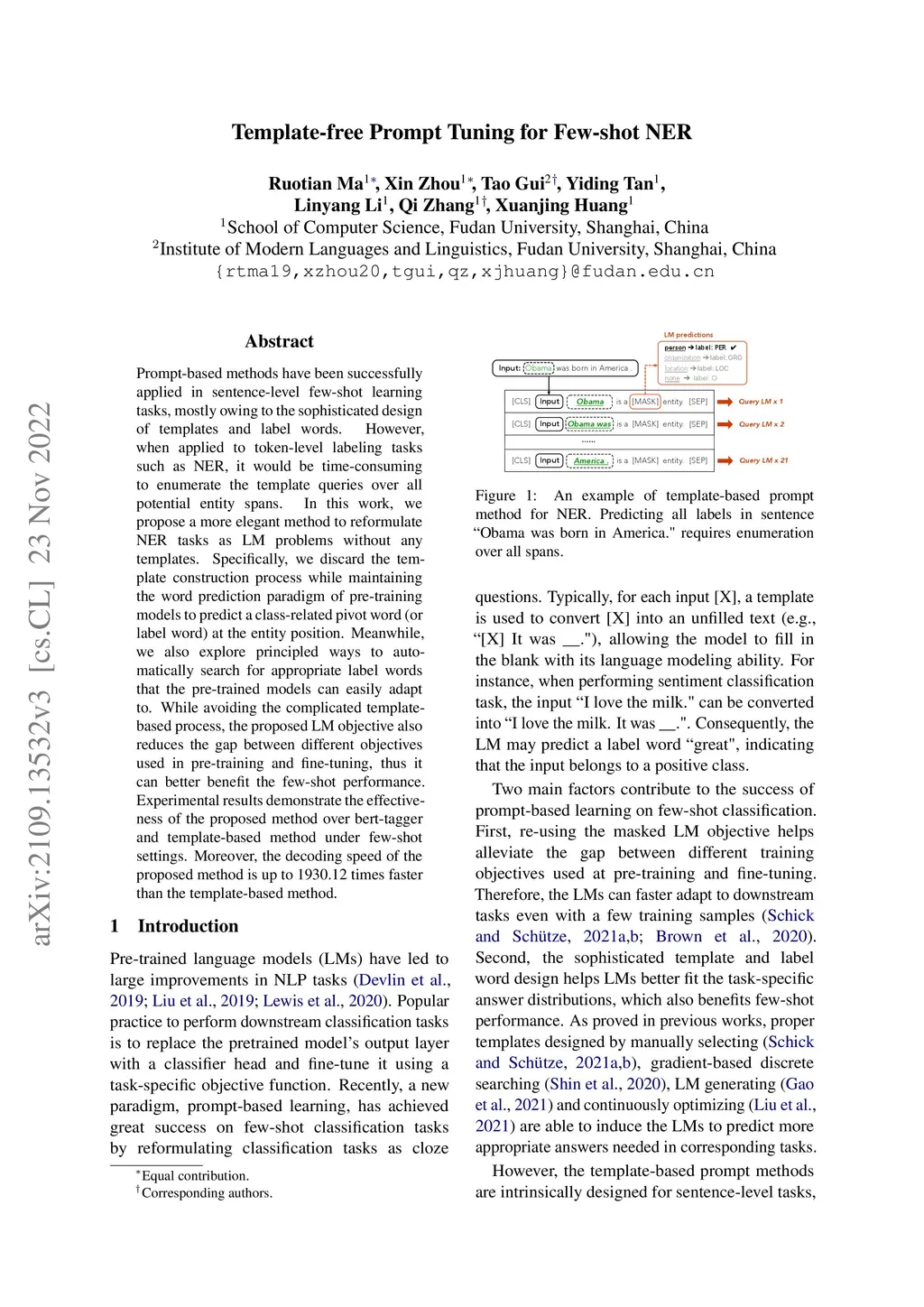 Template-free Prompt Tuning for Few-shot NER