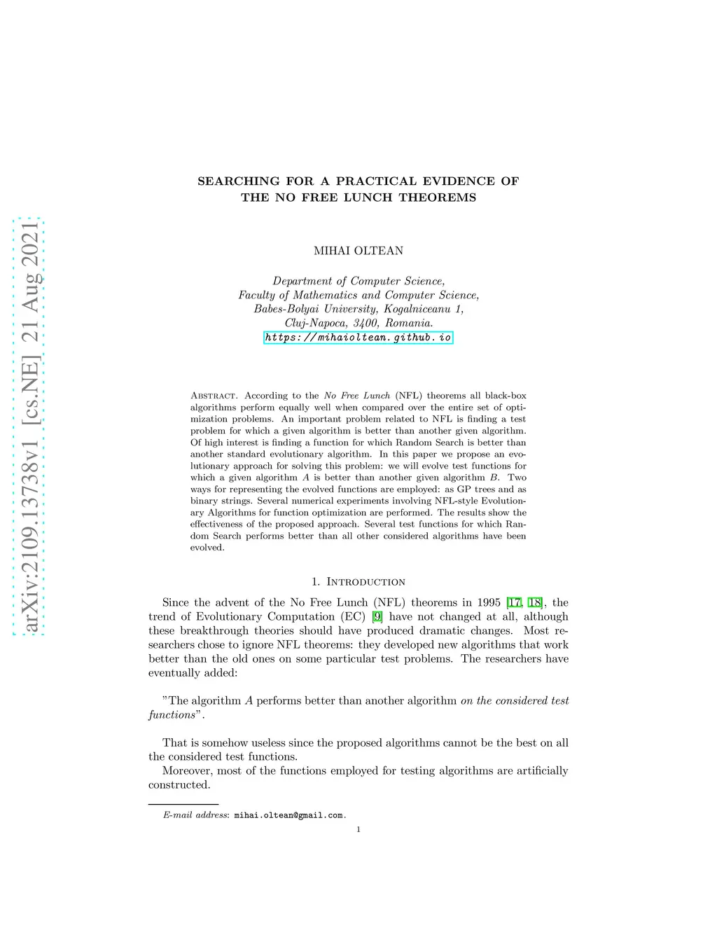 According to the No Free Lunch (NFL) theorems all black-box algorithms perform equally well when compared over the entire set of optimization problems. An important problem related to NFL is finding a test problem for which a given algorithm is better than another given algorithm. Of high interest is finding a function for which Random Search is better than another standard evolutionary algorithm. In this paper, we propose an evolutionary approach for solving this problem: we will evolve test functions for which a given algorithm A is better than another given algorithm B. Two ways for representing the evolved functions are employed: as GP trees and as binary strings. Several numerical experiments involving NFL-style Evolutionary Algorithms for function optimization are performed. The results show the effectiveness of the proposed approach. Several test functions for which Random Search performs better than all other considered algorithms have been evolved.