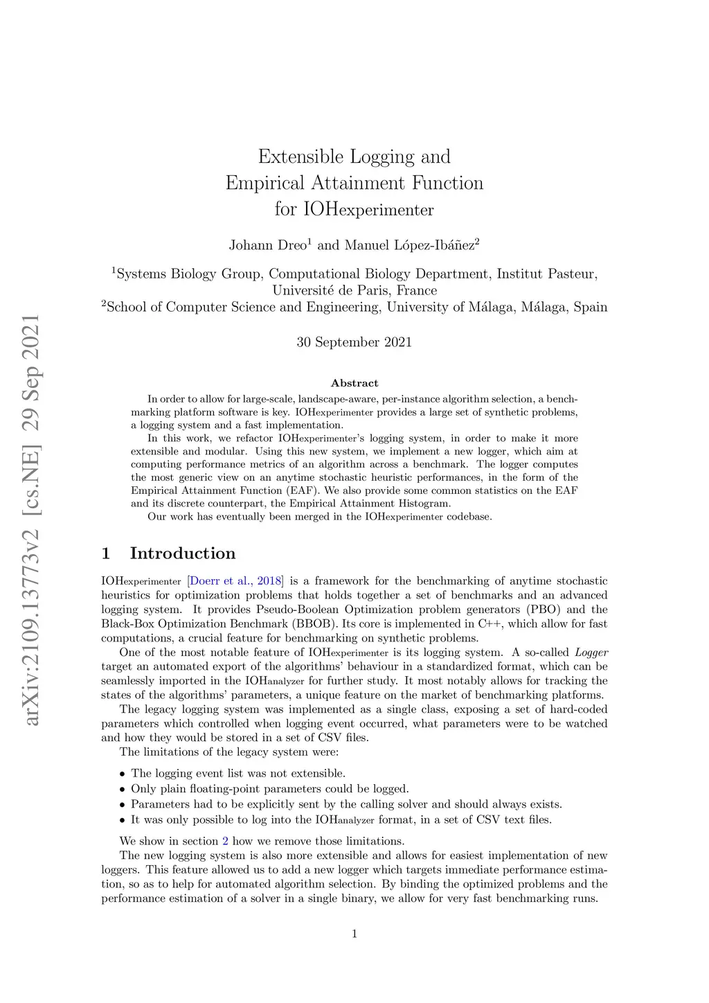 Extensible Logging and Empirical Attainment Function for IOHexperimenter