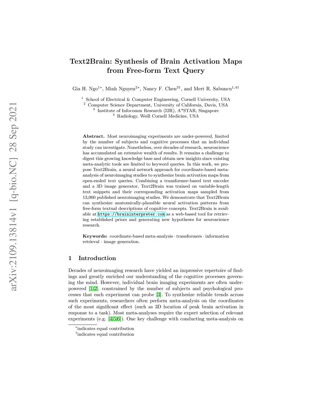 Text2Brain: Synthesis of Brain Activation Maps from Free-form Text Query