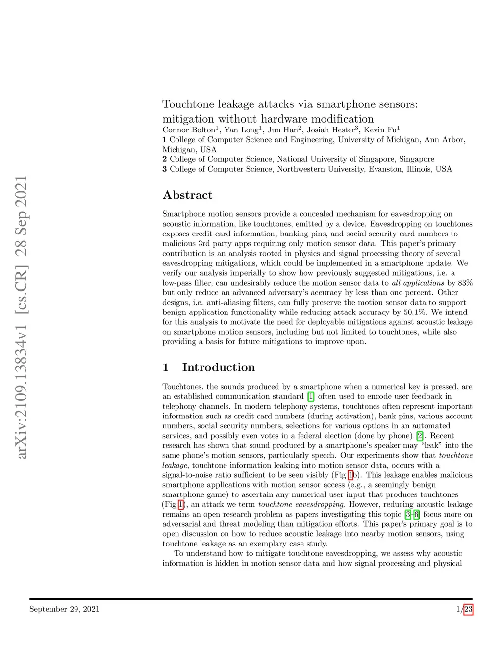 Touchtone leakage attacks via smartphone sensors: mitigation without