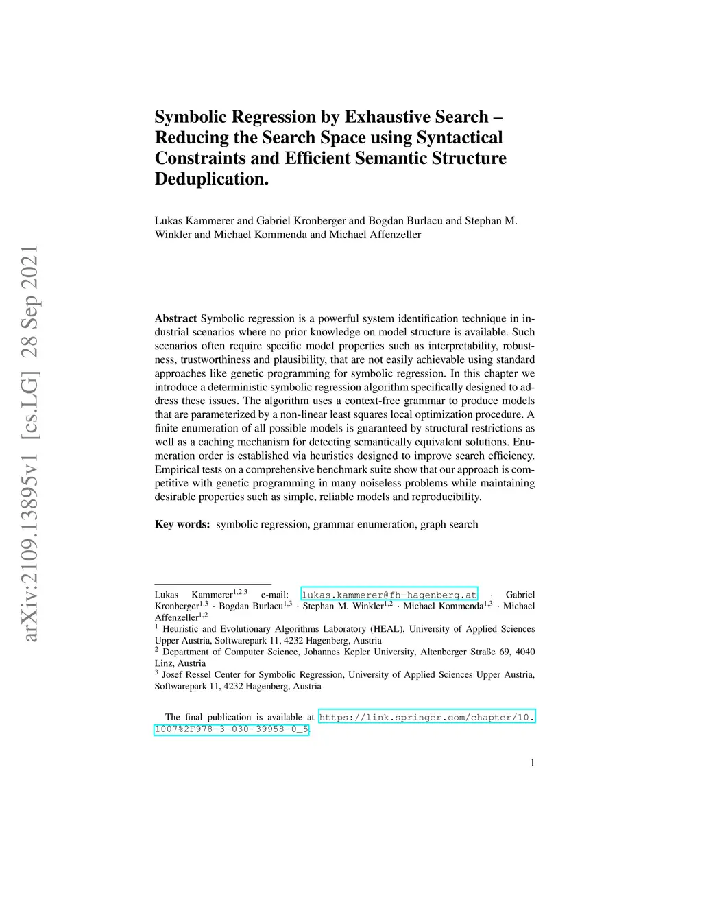 Symbolic regression is a powerful system identification technique in industrial scenarios where no prior knowledge on model structure is available. Such scenarios often require specific model properties such as interpretability, robustness, trustworthiness and plausibility, that are not easily achievable using standard approaches like genetic programming for symbolic regression. In this chapter we introduce a deterministic symbolic regression algorithm specifically designed to address these issues. The algorithm uses a context-free grammar to produce models that are parameterized by a non-linear least squares local optimization procedure. A finite enumeration of all possible models is guaranteed by structural restrictions as well as a caching mechanism for detecting semantically equivalent solutions. Enumeration order is established via heuristics designed to improve search efficiency. Empirical tests on a comprehensive benchmark suite show that our approach is competitive with genetic programming in many noiseless problems while maintaining desirable properties such as simple, reliable models and reproducibility.