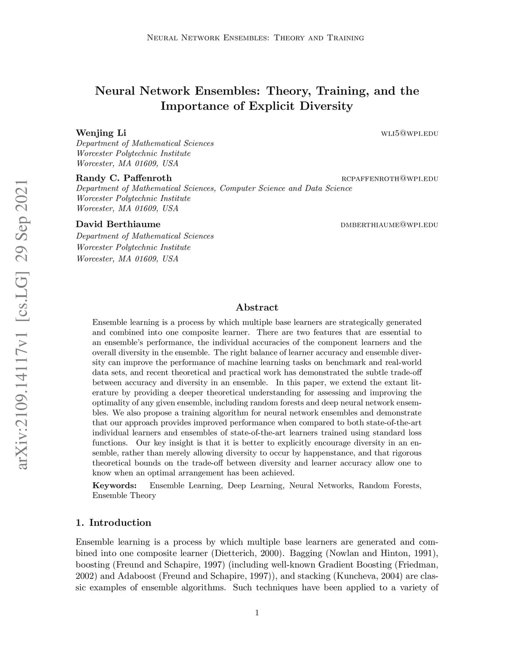 Ensemble learning is a process by which multiple base learners are strategically generated and combined into one composite learner. There are two features that are essential to an ensemble's performance, the individual accuracies of the component learners and the overall diversity in the ensemble. The right balance of learner accuracy and ensemble diversity can improve the performance of machine learning tasks on benchmark and real-world data sets, and recent theoretical and practical work has demonstrated the subtle trade-off between accuracy and diversity in an ensemble. In this paper, we extend the extant literature by providing a deeper theoretical understanding for assessing and improving the optimality of any given ensemble, including random forests and deep neural network ensembles. We also propose a training algorithm for neural network ensembles and demonstrate that our approach provides improved performance when compared to both state-of-the-art individual learners and ensembles of state-of-the-art learners trained using standard loss functions. Our key insight is that it is better to explicitly encourage diversity in an ensemble, rather than merely allowing diversity to occur by happenstance, and that rigorous theoretical bounds on the trade-off between diversity and learner accuracy allow one to know when an optimal arrangement has been achieved.