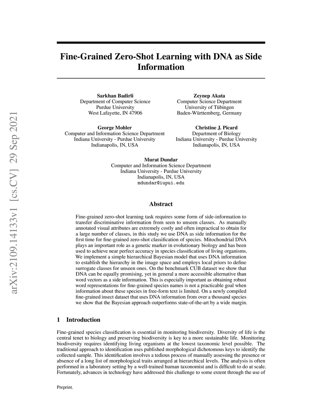 Fine-Grained Zero-Shot Learning with DNA as Side Information