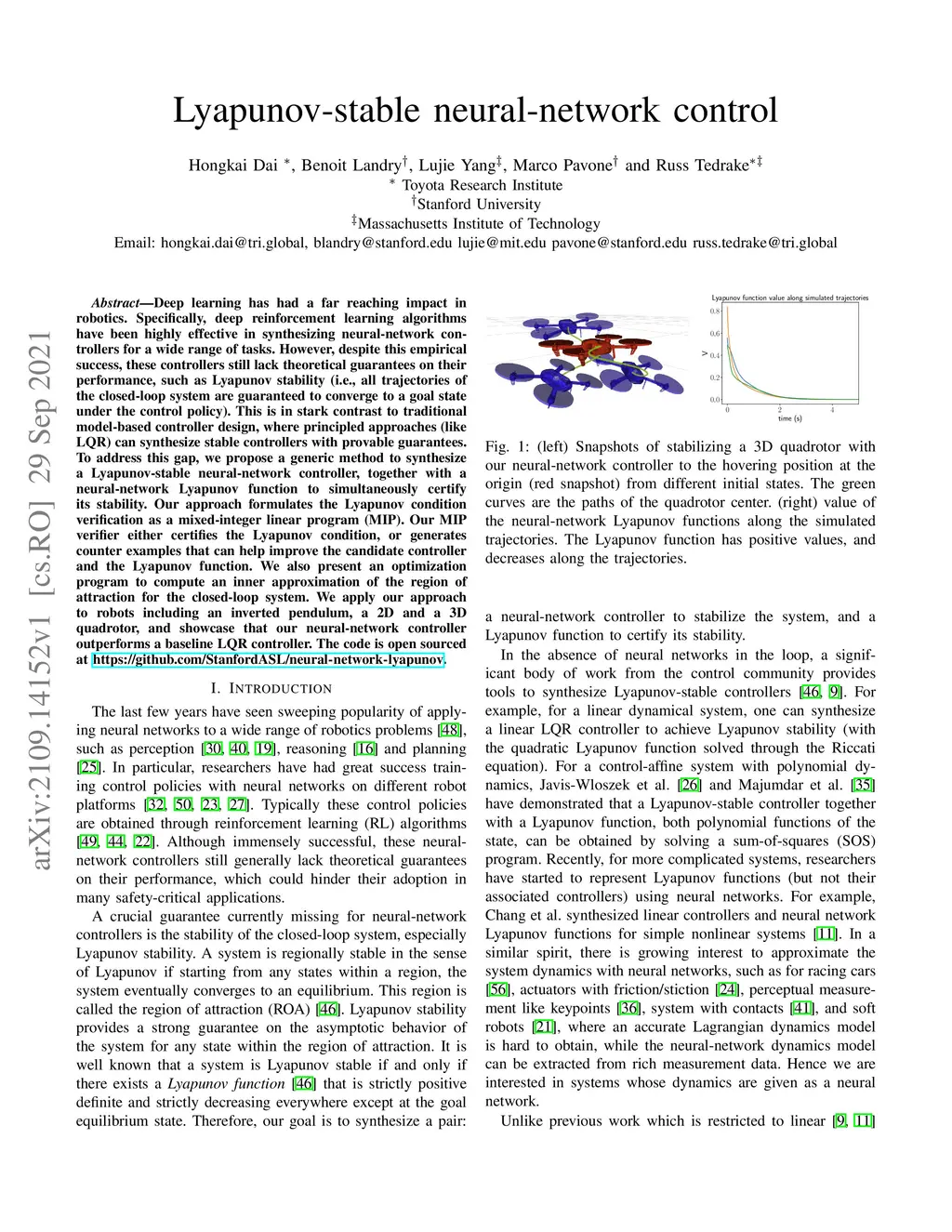 Lyapunov-stable neural-network control