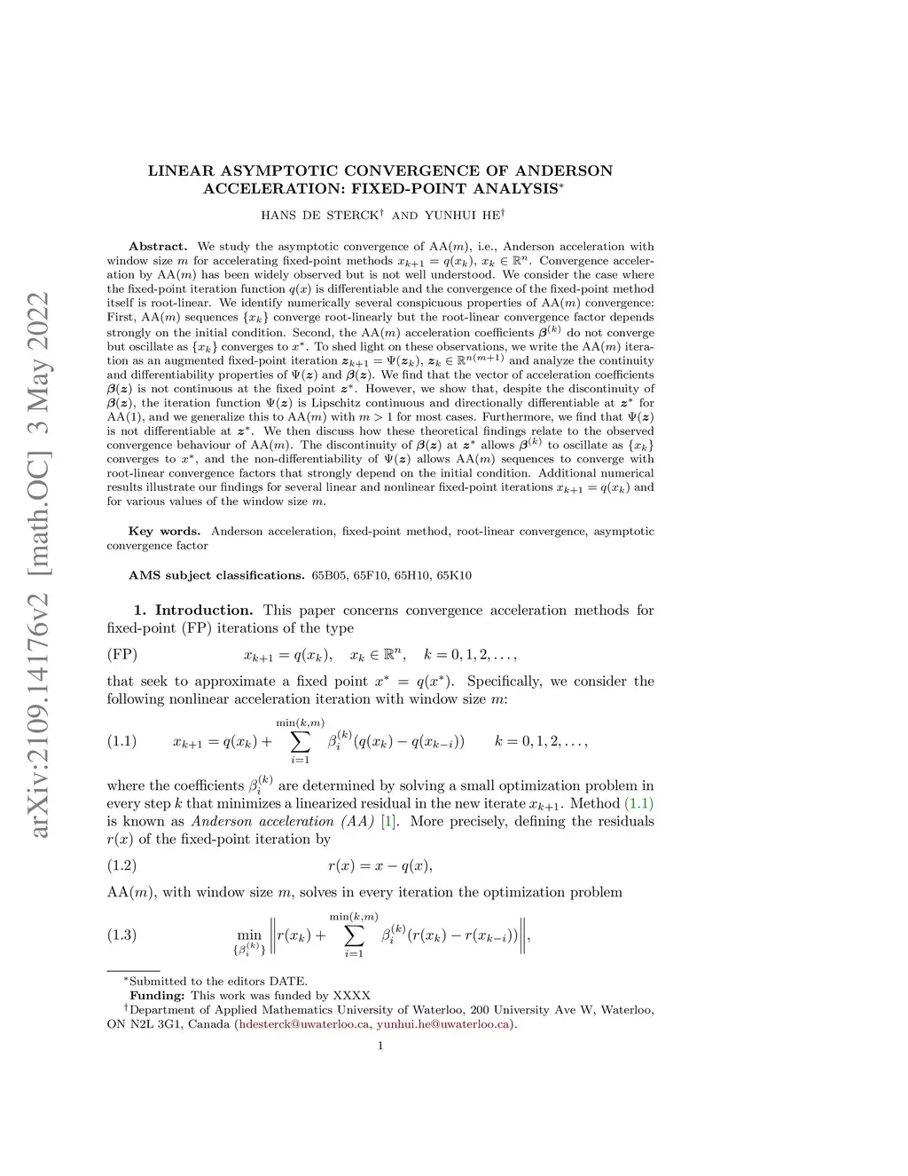 Linear Asymptotic Convergence of Anderson Acceleration: Fixed-Point