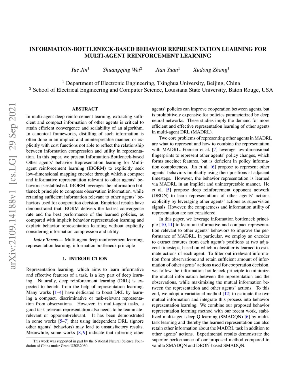 Information-Bottleneck-Based Behavior Representation Learning for
